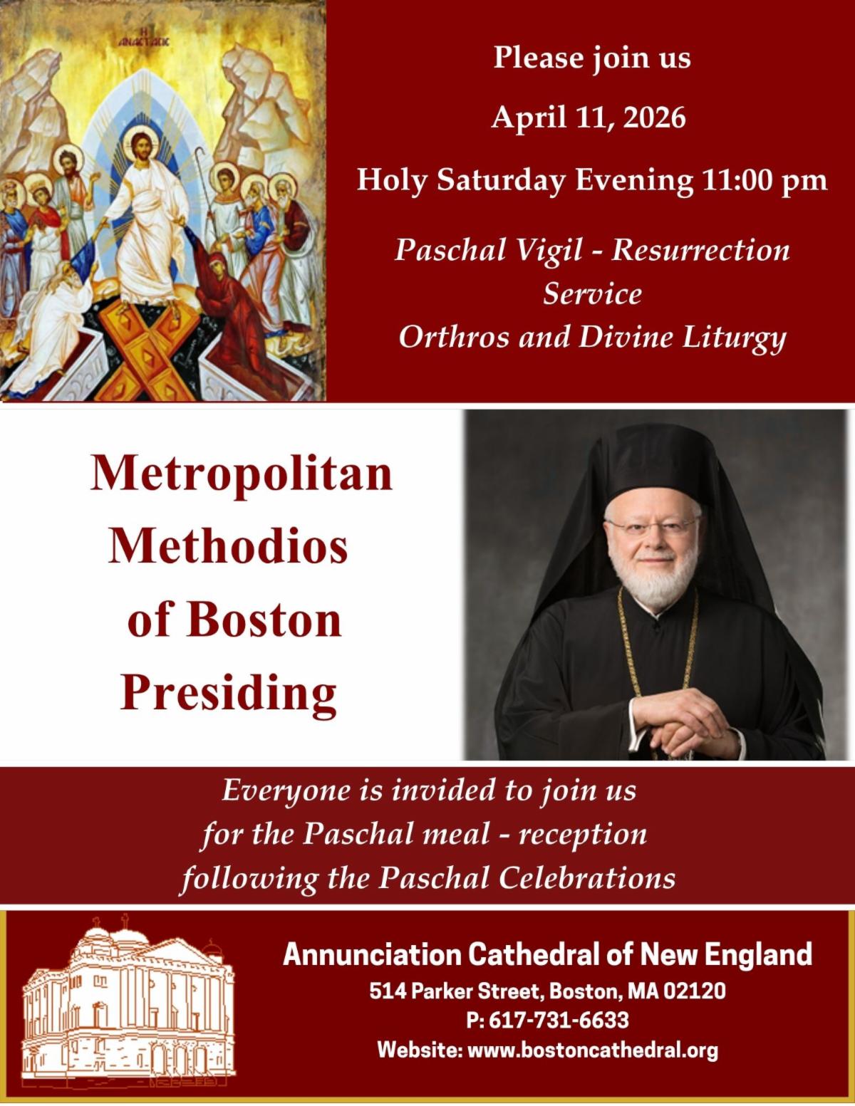 April 11, 2026 Holy Saturday Evening 11:00 pm Get link Facebook X Pinterest Email Other Apps - April 08, 2026 Annunciation Cathedral of New England | 162 Goddard Ave | Brookline, MA 02445 US Unsubscribe | Update Profile | Constant Contact Data Notice Get link Facebook X Pinterest Email Other Apps
